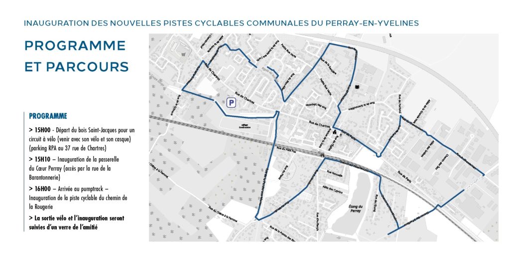 Le samedi 20 septembre, à 15h, la Ville du Perray-en-Yvelines vous invite à l’inauguration officielle des nouvelles pistes cyclables, chemin de la Rougerie et le secteur de la Barantonnerie.
